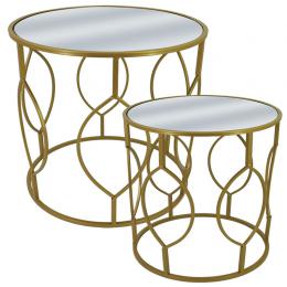 ΜΕΤΑΛΛIKA ΤΡΑΠΕΖΑΚΙΑ ΣΕΤ/2 ΣΤΡΟΓΓΥΛΑ ΜΕ ΚΑΘΡΕΠΤΗ ΧΡΥΣΟ L:Φ42x45 , S:35x40cm