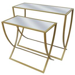 ΜΕΤΑΛΛΙΚΑ ΤΡΑΠΕΖΑΚΙΑ ΣΕΤ/2 ΟΡΘΟΓΩΝΙΑ ΜΕ ΚΑΘΡΕΠΤΗ ΧΡΥΣΟ L:80x30x65, S:60x30x55cm