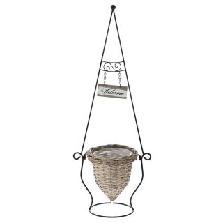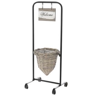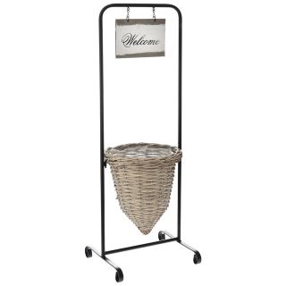 ΜΑΥΡΟ ΜΕΤΑΛΛΙΚΟ ΣΤΑΝΤ WELCOME ΜΕ ΓΚΡΙ ΨΑΘΙΝΟ ΚΑΛΑΘΙ 26,5x24,5x70EK ΜΕ ΚΑΛΑΘΙ 21x22EK