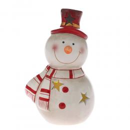 ΑΣΠΡΟΣ ΚΟΚΚΙΝΟΣ ΚΕΡΑΜΙΚΟΣ ΧΙΟΝΑΝΘΡΩΠΟΣ ΜΕ ΦΩΣ 10Χ8Χ15ΕΚ