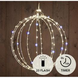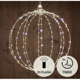 ΜΠΑΛΑ 40CM 3D ΜΕΤΑΛΛΙΚΗ ΛΕΥΚΟ 192LED (168 LED STEADY/ 24 LED FLASH) ΘΕΡΜΟ ΛΕΥΚΟ/ ΑΣΗΜΙ ΣΥΡΜΑ-ΑΝΑΔΙΠΛΟΥΜΕΝΟ-5M ΚΑΛΩΔΙΟ - ON/ DIMMER/ 8-16H TIMER/ OFF 3.5V IP44 ΜΕΤ/ΣΤΗΣ 2,1VA